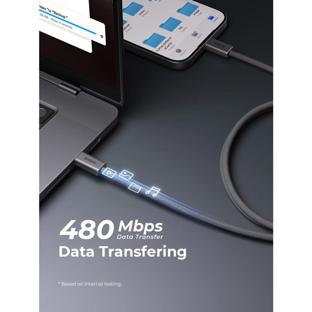 Cabo Aukey USB-C para USB-C Nylon Trançado de 1.0m e 240W CB-DCC241 Cinza