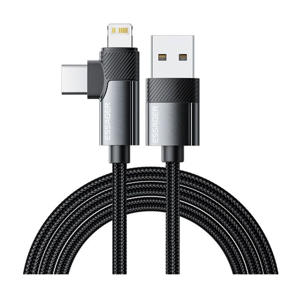 Cabo Essager USB-A para USB-C/Lightning 3A 2M Cinza