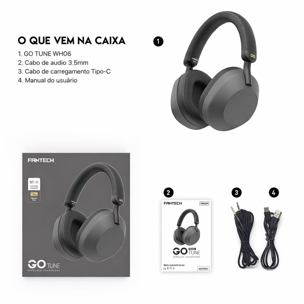 Headphone Fantech GO Tune WH06 Bluetooth + P3 Cinza