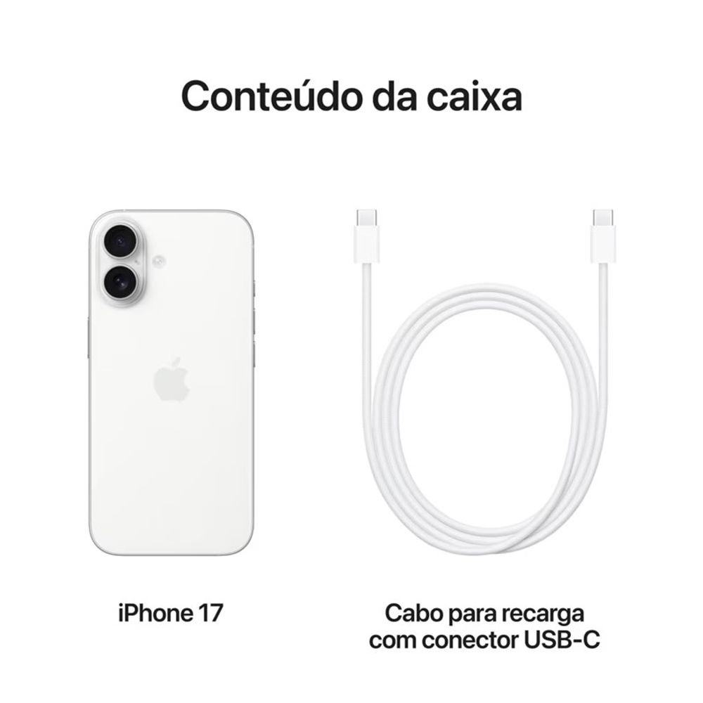 iPhone 17 Apple 256GB iOS 5G Tela 6.3" Câmera Dupla 48MP Branco