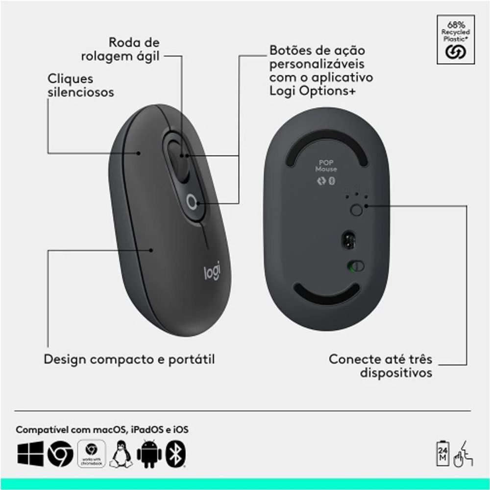 Kit Teclado e Mouse Logitech sem Fio POP Icon Cinza