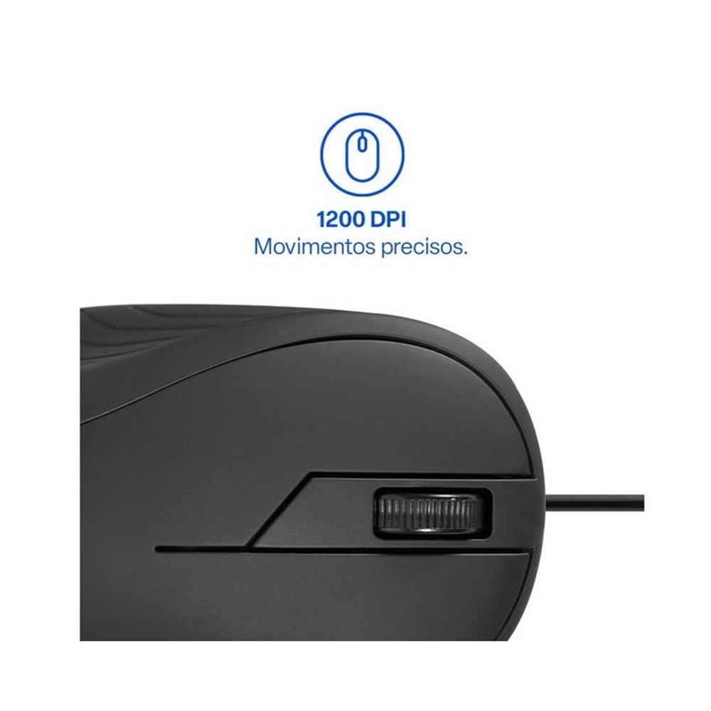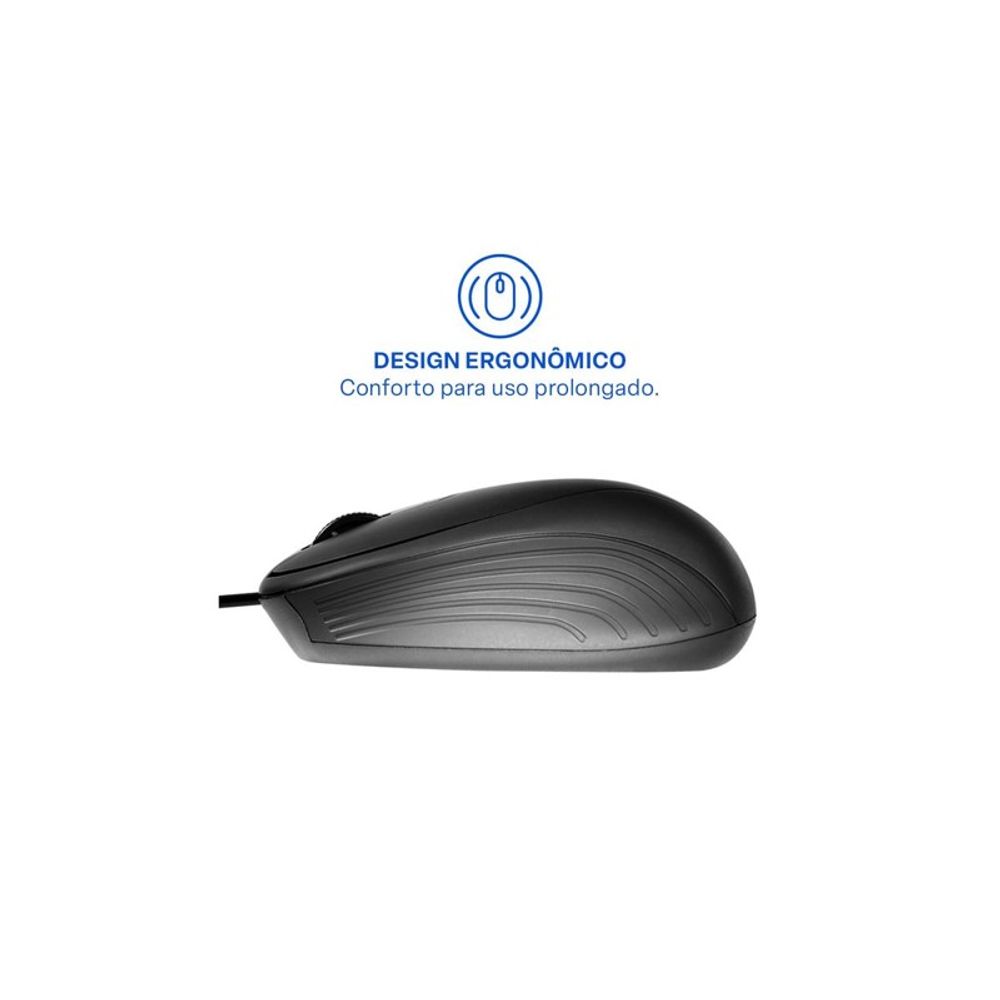 Mouse Multilaser USB com Fio Emborrachado MF300 Preto